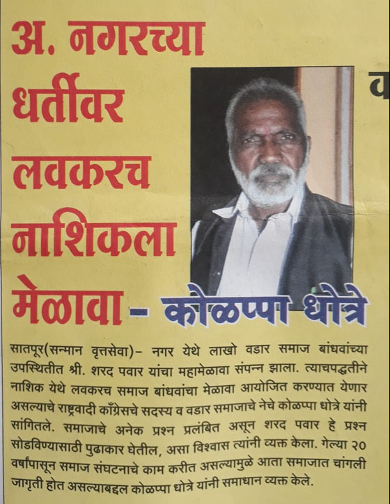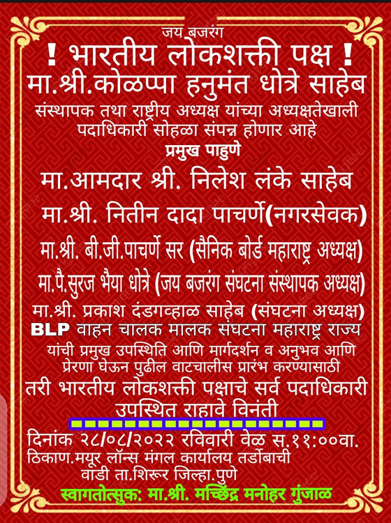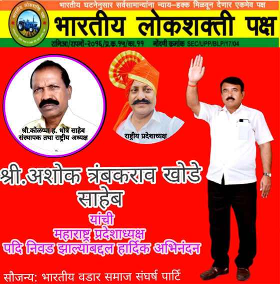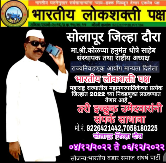 मा. श्री. कोळप्पा ह. धोत्रे संस्थापक तथा राष्ट्रीय अध्यक्ष भारतीय लोकशक्ती पक्ष.